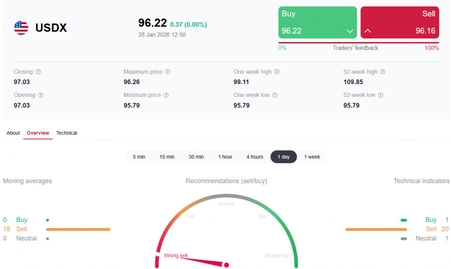 *) см. также: Торговые индикаторы InstaForex по USDX Доллар смог восстановиться в первой половине сегодняшнего торгового дня, а его индекс USDX – подняться от достигнутого во вторник минимума (с марта 2022 года) и отметки 95.52 к текущей отметке 96.20. Тем не менее доллар продолжает оставаться под давлением, а индекс доллара USDX – в зоне глобального медвежьего рынка, ниже стратегического уровня поддержки 96.80 (ЕМА200 на месячном графике). Текущая динамика указывает на то, что восстановление доллара